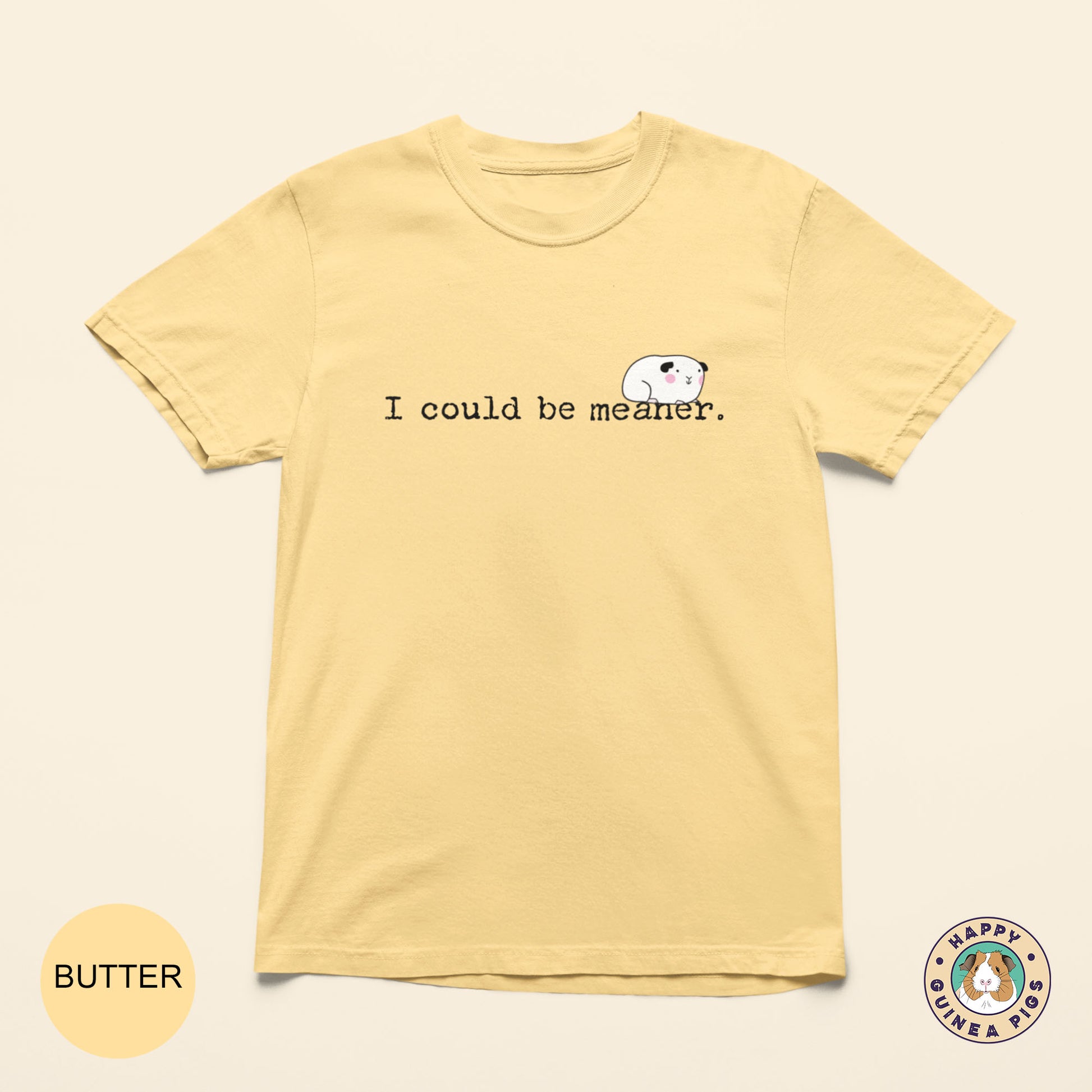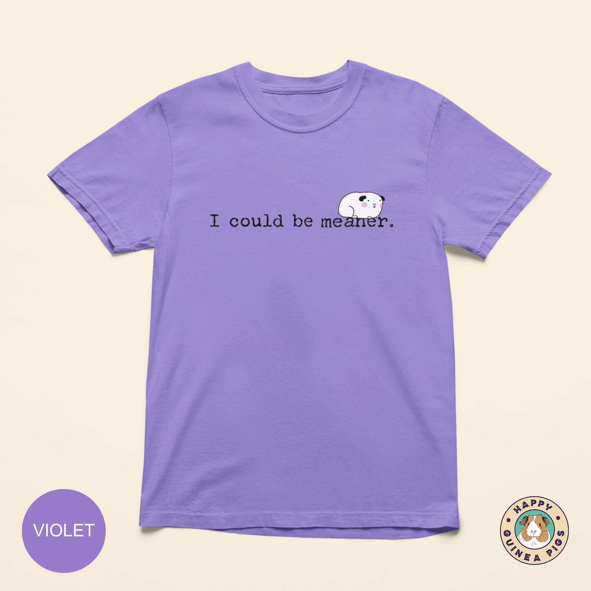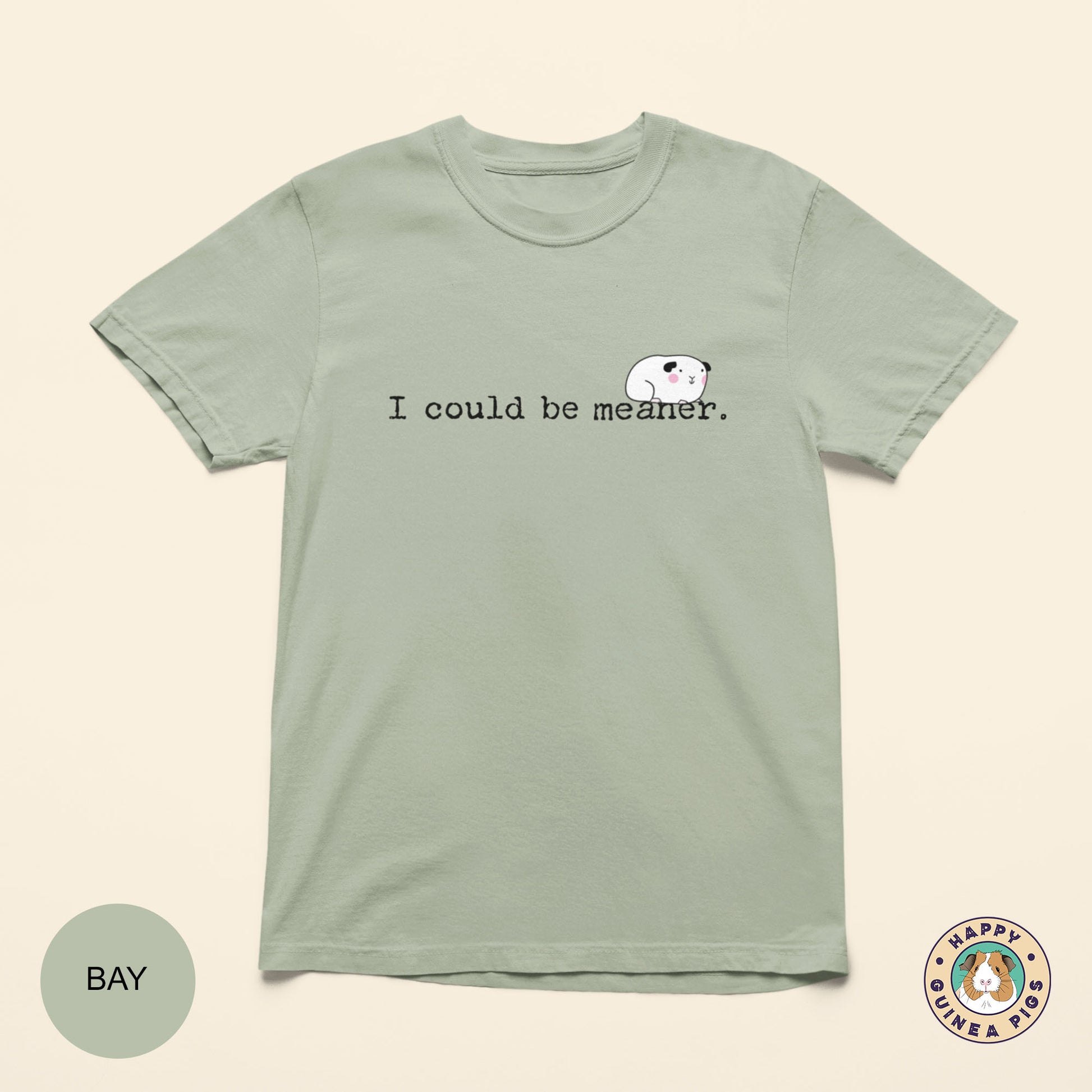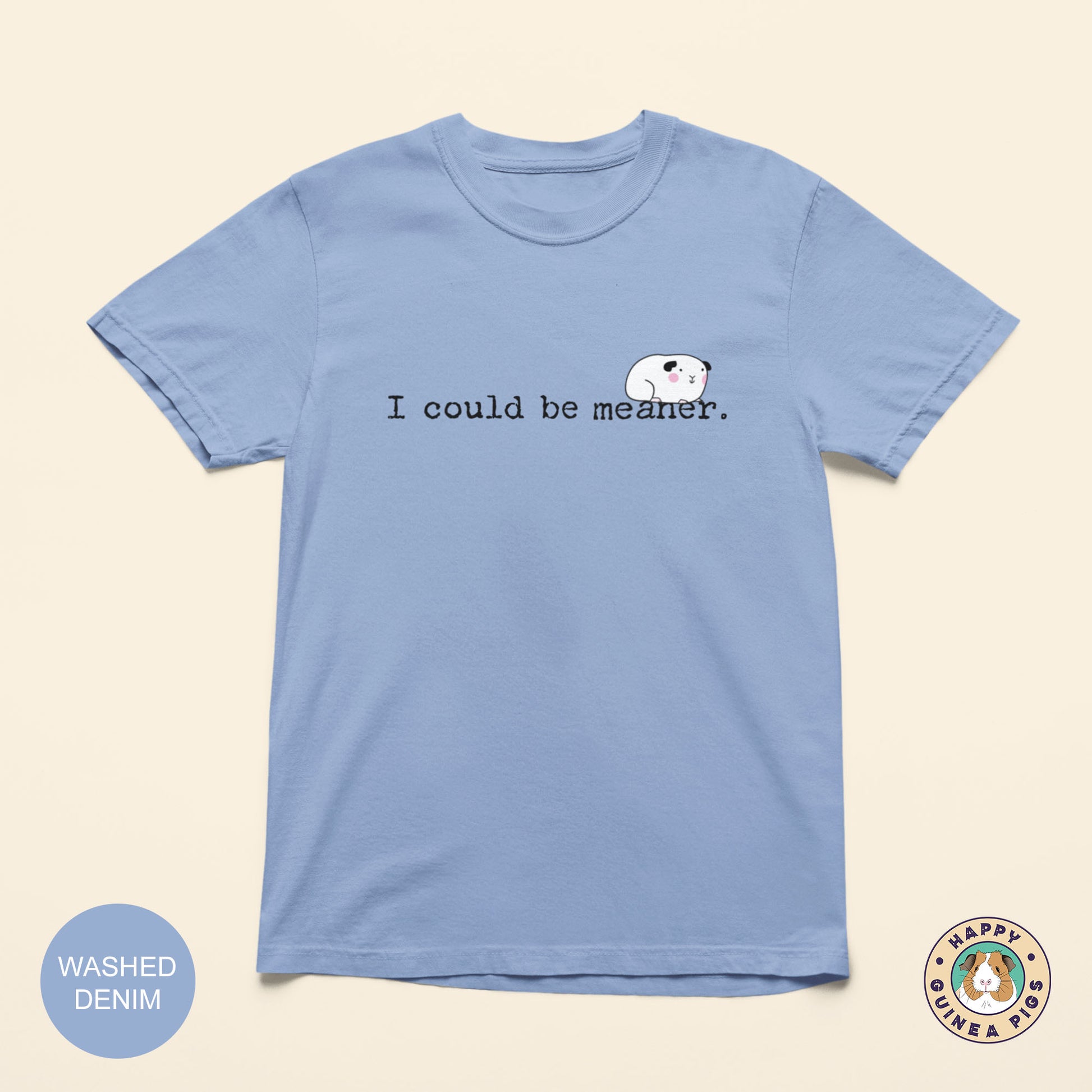 You'll love this silly guinea pig tee design, "I could be meaner". It is sure to make you smile and be a staple tee in your wardrobe.