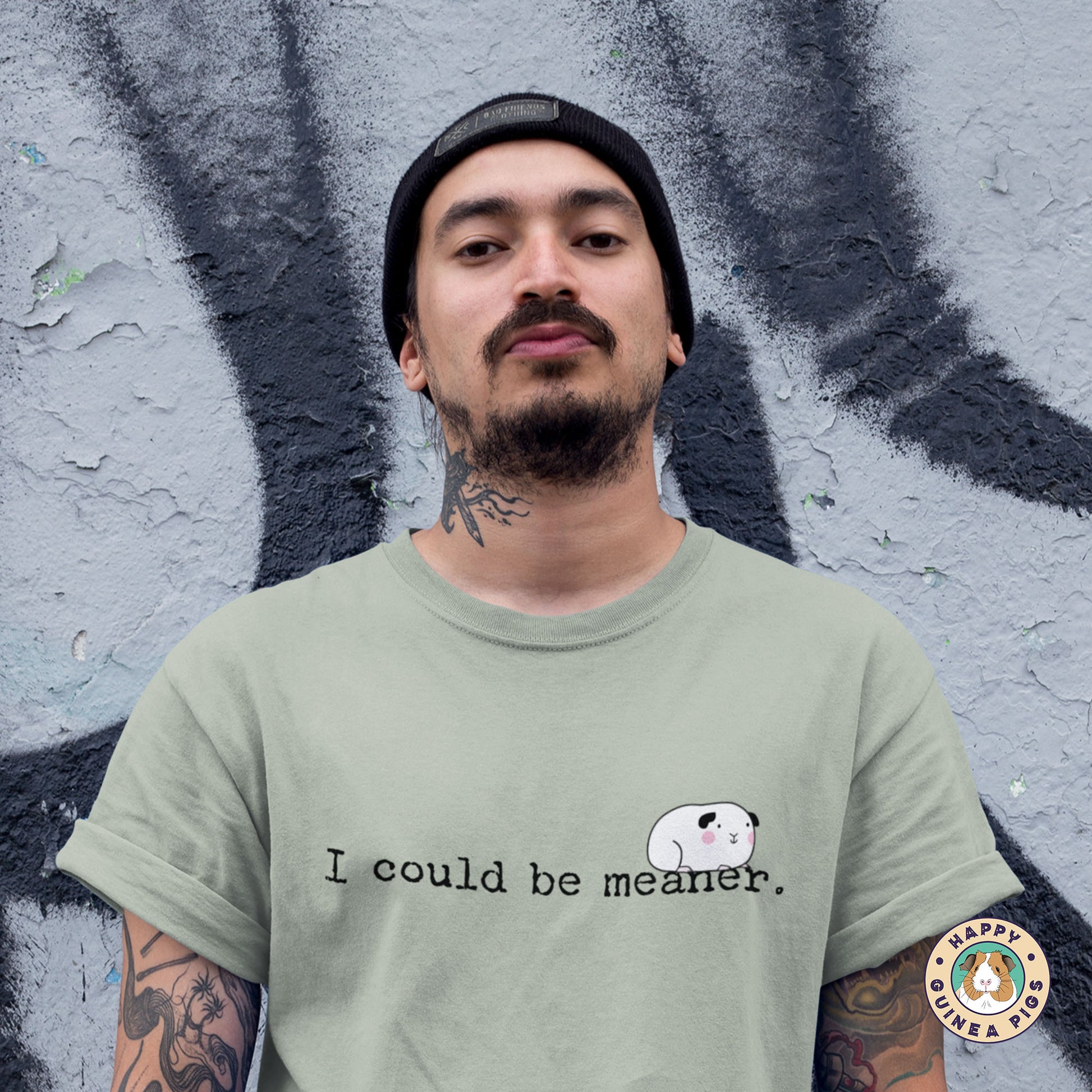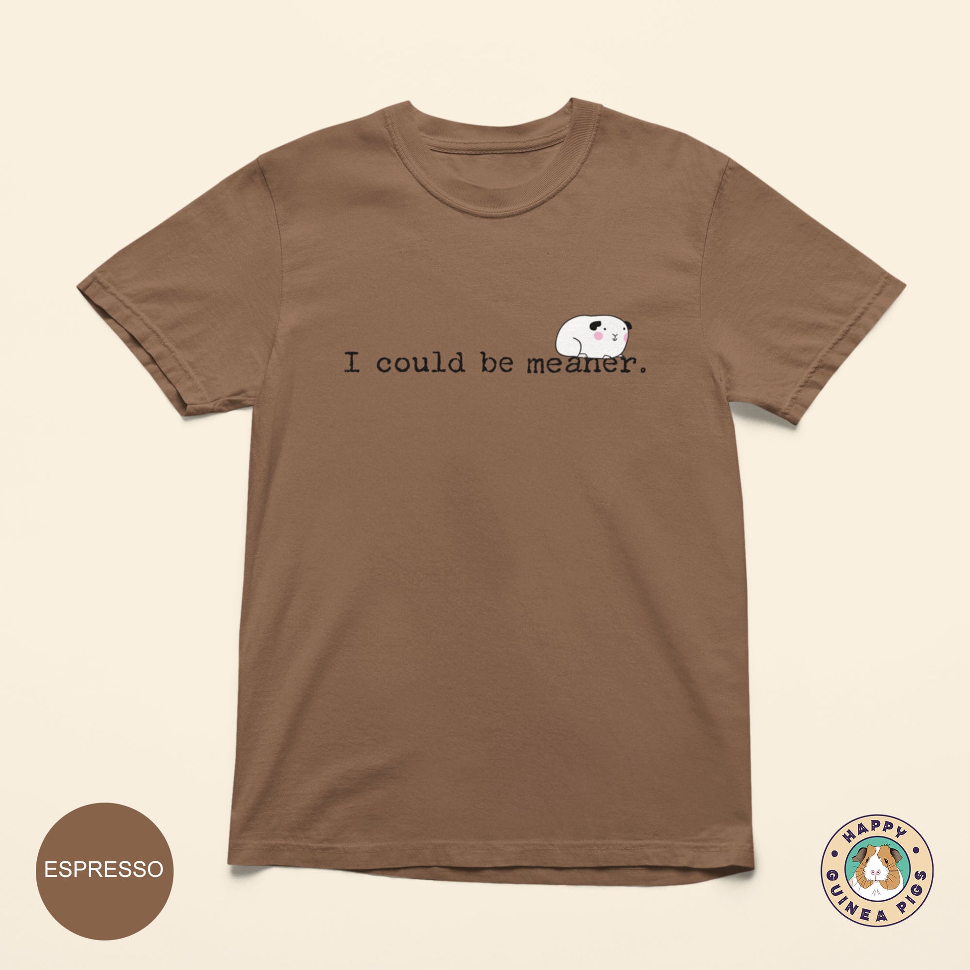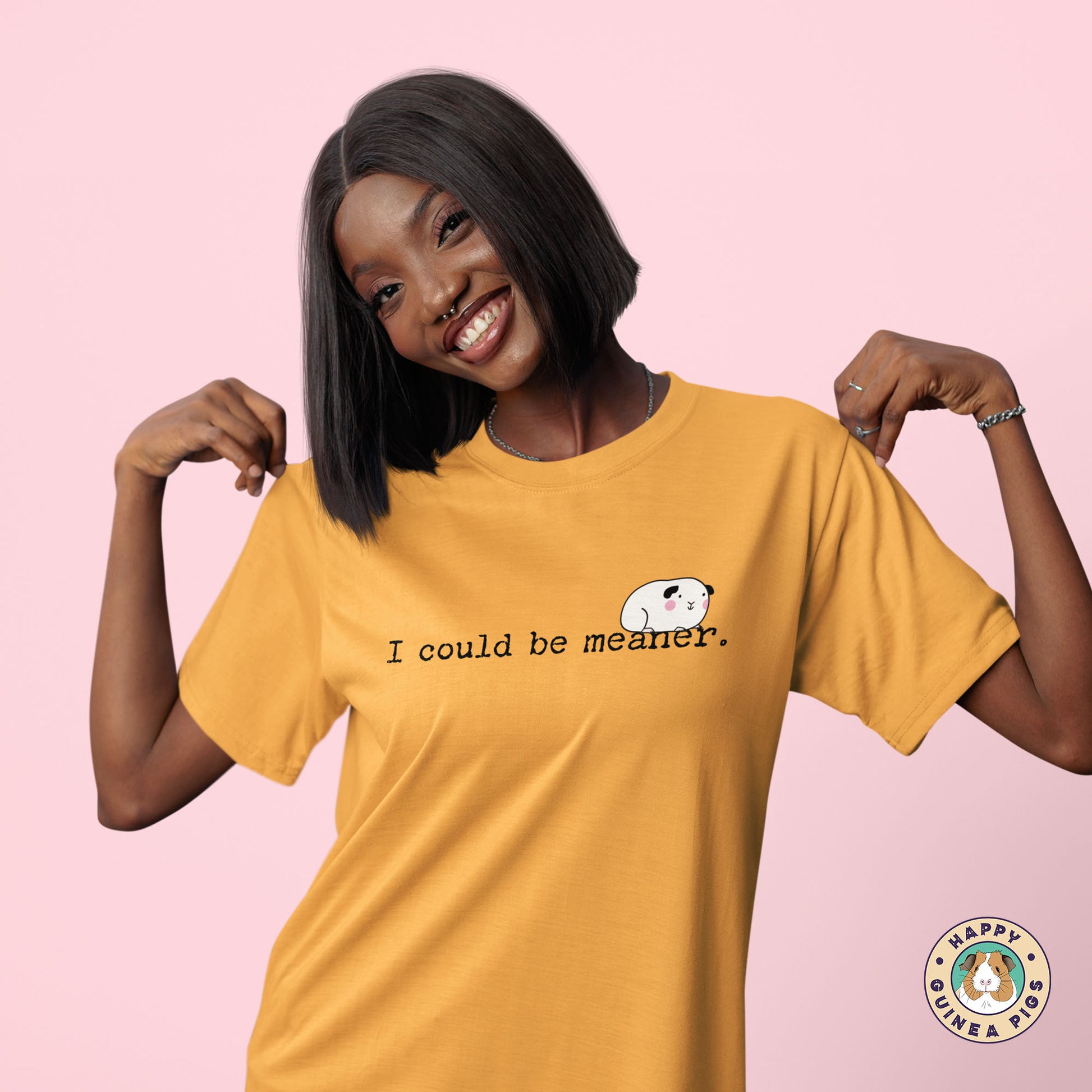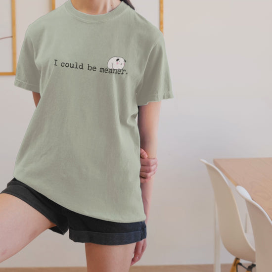 You'll love this silly guinea pig tee design, "I could be meaner". It is sure to make you smile and be a staple tee in your wardrobe.