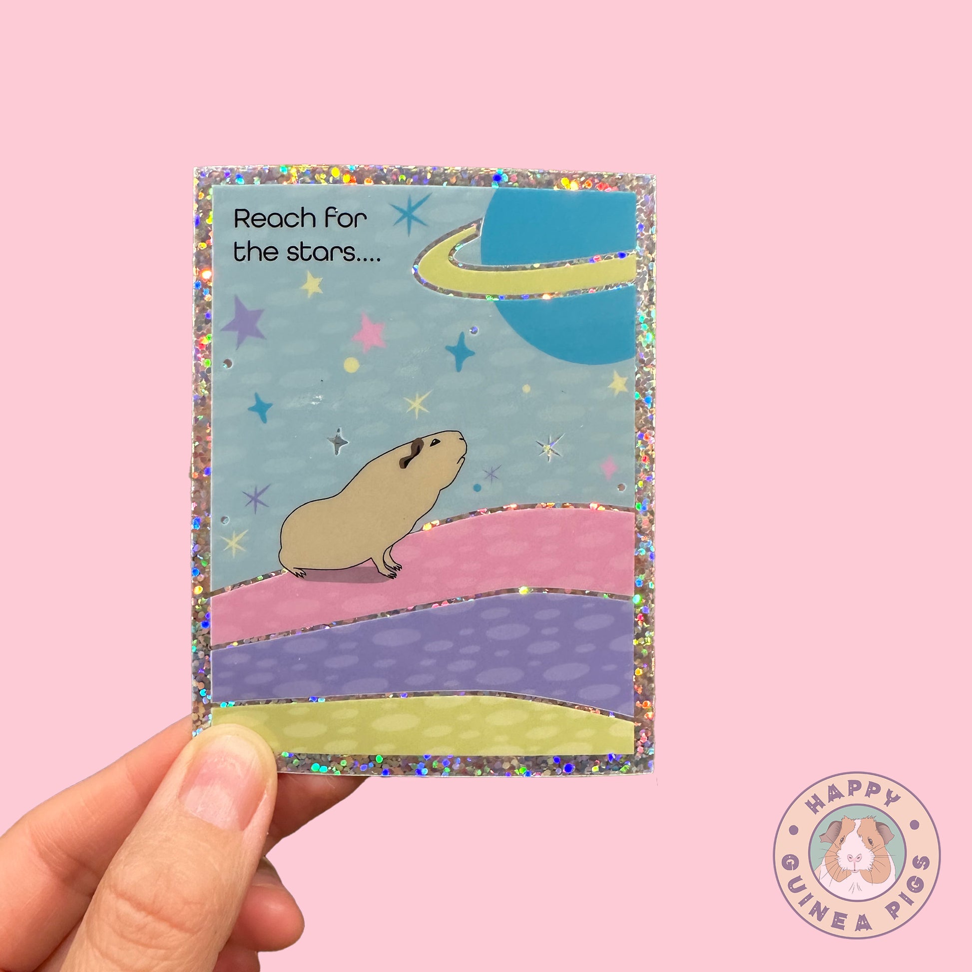 Add some sparkle into your life and fall in love with this adorable 'Reach for the stars' Sticker. Ideal for personalizing craft boxes, folders, journals, laptops, water bottles, phone cases, and more. Don't be afraid to add some bling to everyday items.