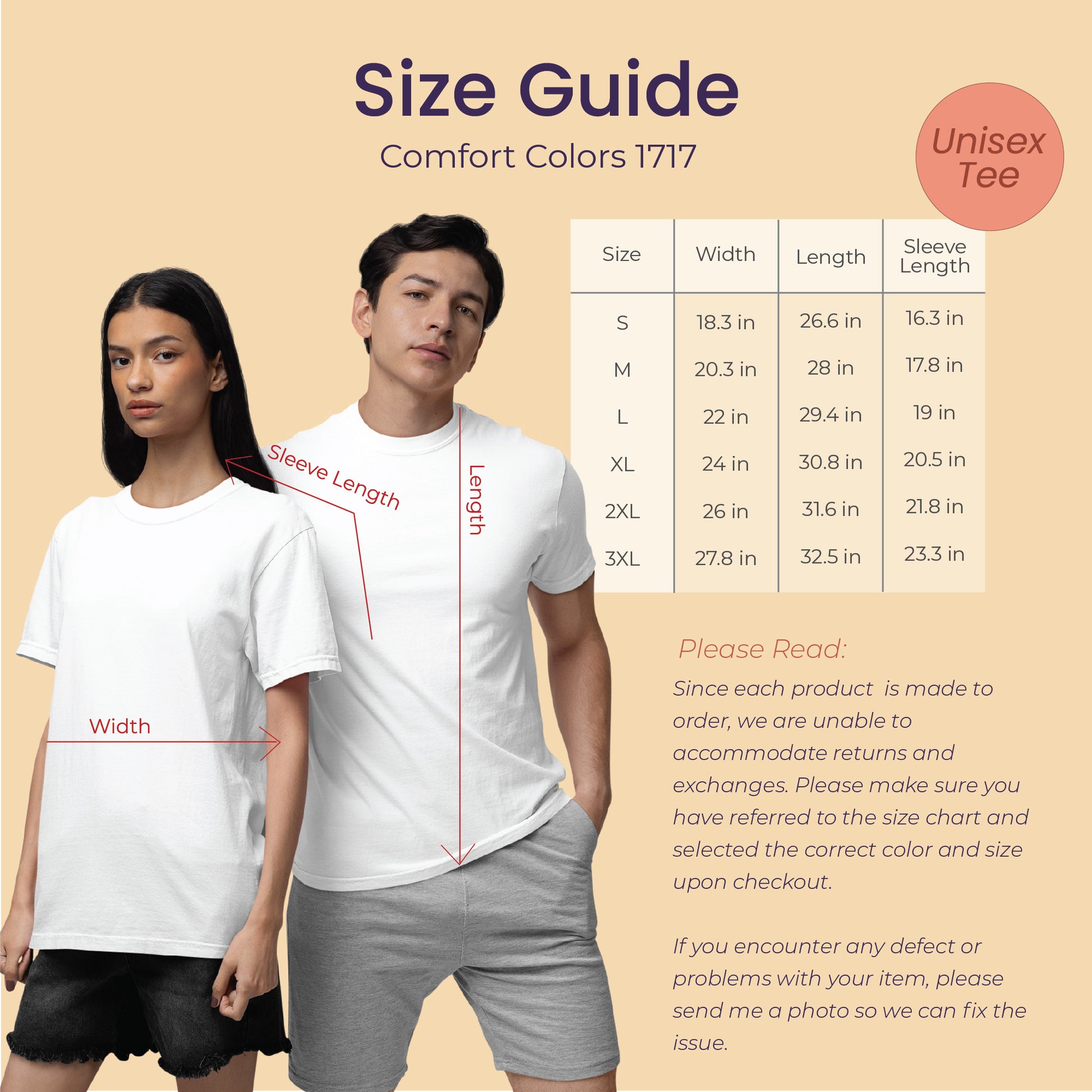 - Since each T-shirt is made to order through my Print on Demand vendor, therefore we are unable to accommodate returns and exchanges. Please make sure you have referred to the size chart and selected the correct color and size upon checkout.