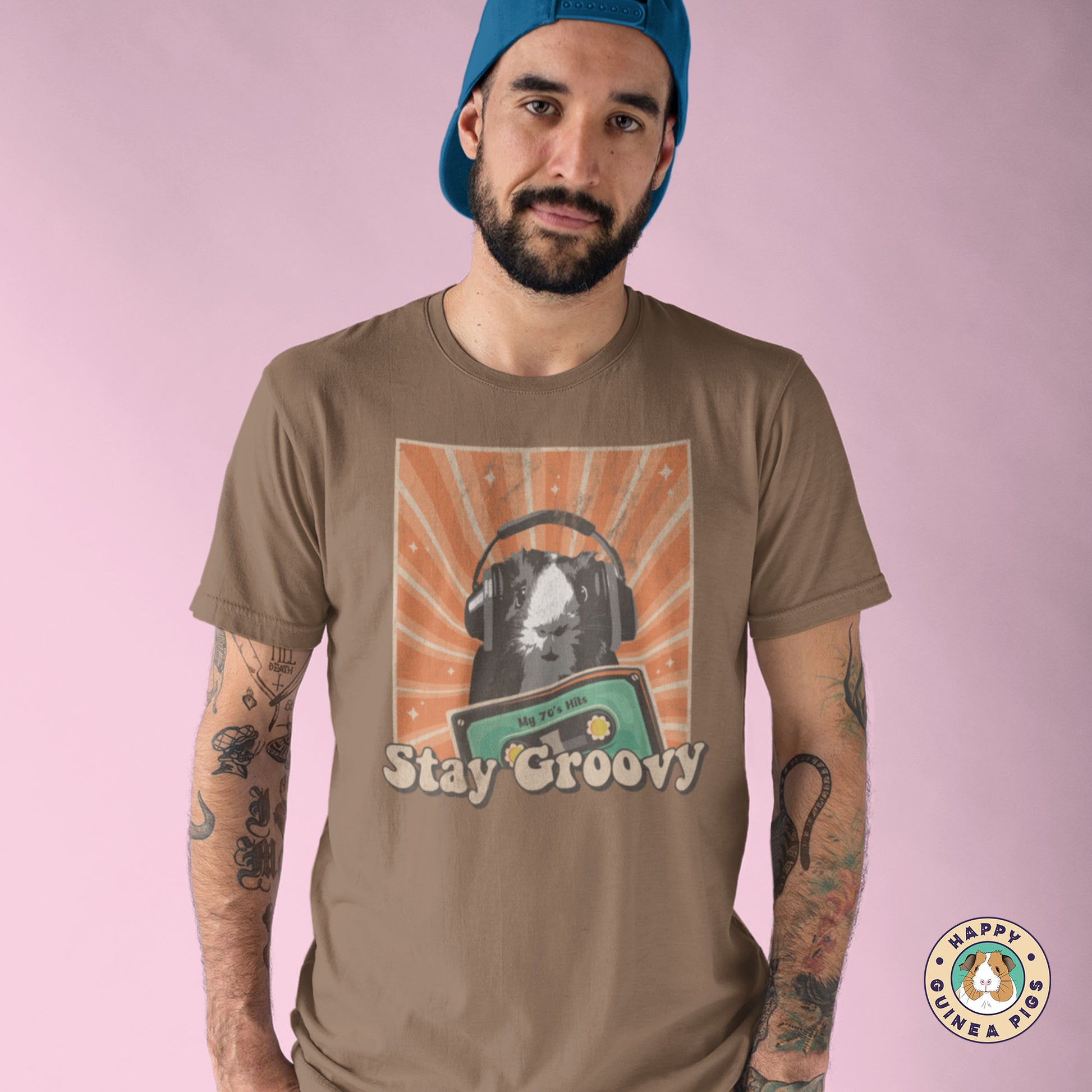 Don't miss out on this Stay Groovy 70's retro guinea pig tee design. It is sure to make you smile and be a staple tee in your wardrobe.